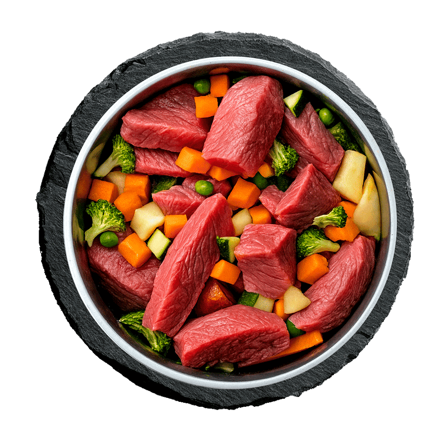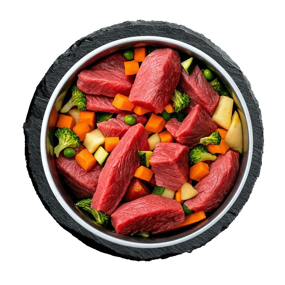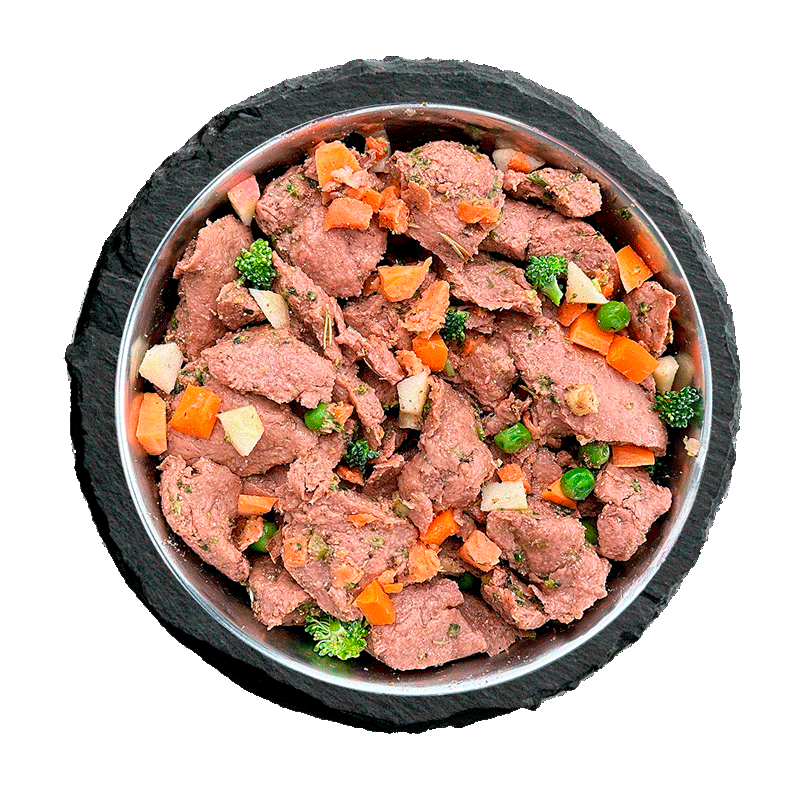 La viande de haute qualité et les abats sont délicatement cuits à la vapeur à basse température. Ensuite seulement, nous ajoutons différents légumes blanchis, des huiles de qualité et des minéraux naturels à l’aliment cuit à la vapeur. Développé avec des vétérinaires et préparé avec amour.